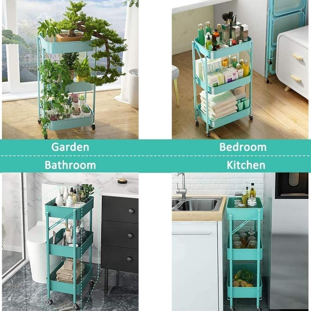 - Multiple Shelves: Equipped with several strategically spaced shelves, the trolley offers ample storage to organize and transport various items efficiently, accommodating supplies of different sizes and shapes.